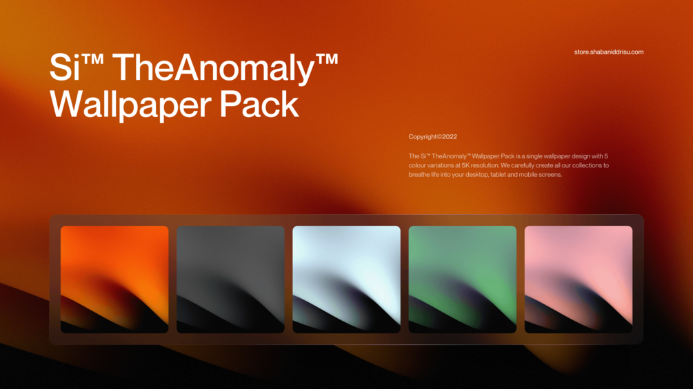 The Si™ TheAnomaly™ Wallpaper Pack is a single wallpaper design with 5 colour variations at 5K resolution. We carefully create all our collections to breathe life into your desktop, tablet and mobile screens.
